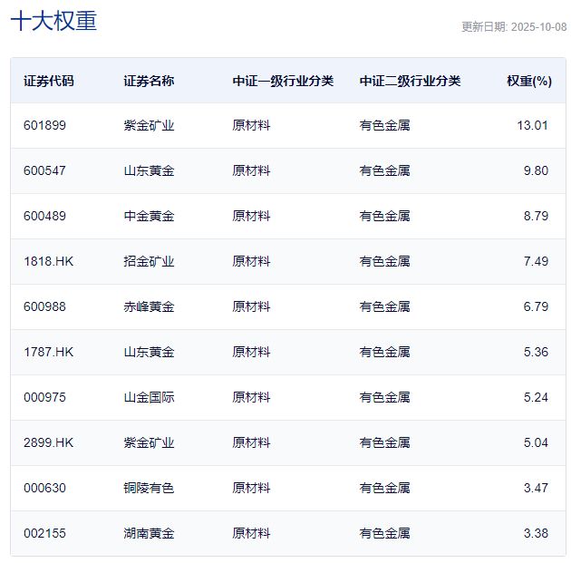 该指数的权重集中于前十大成分股,占比合计超60%;指数主要投资于黄金产业下的龙头个股,成分股票代表性较强;从行业分布上来看,中证沪深港黄金产业股票指数以有色金属为主,覆盖了黄金的生产、制作、销售等全流程,在行业集中的同时,不失产业链上中下游的完整性;中证沪深港黄金产业股票指数的净利润增速更为稳健。