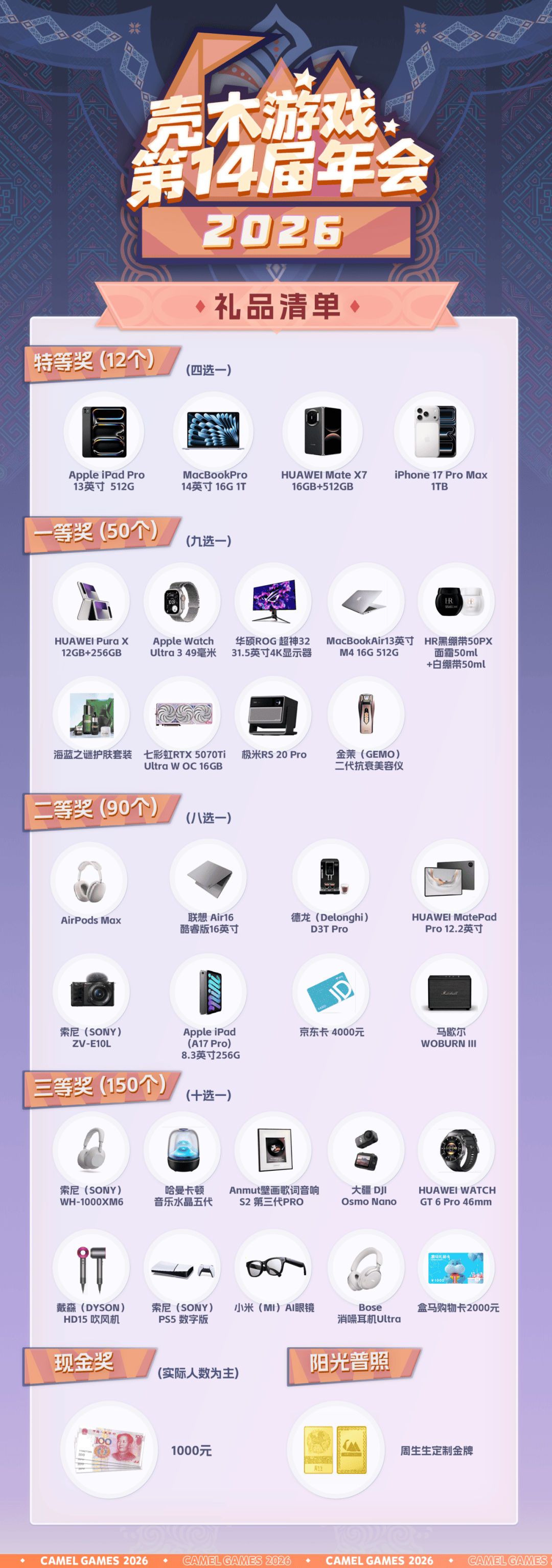 虽然各大游戏公司嘴上都说着不卷了,但2026年大家年会奖品的含金量依旧爆表。
