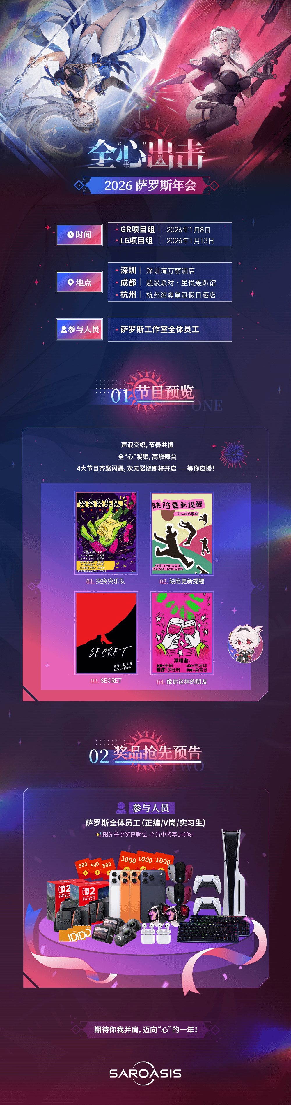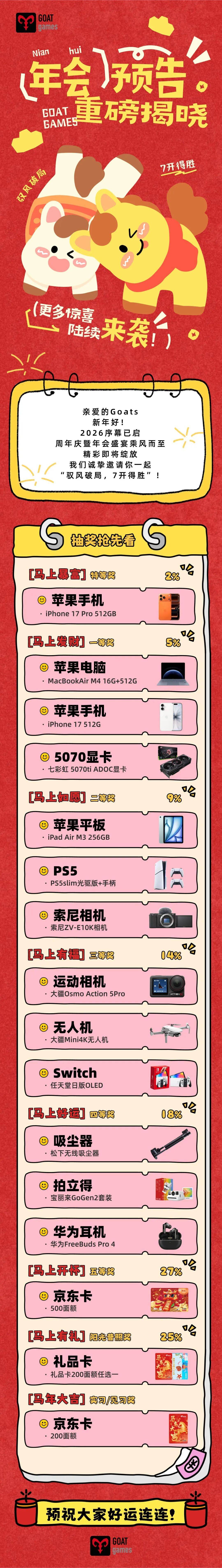 《命运扳机》研发商萨罗斯工作室的奖品包括苹果手机、PS5、Switch 2等,阳光普照奖为300元京东卡。