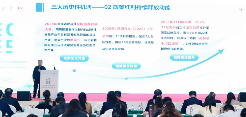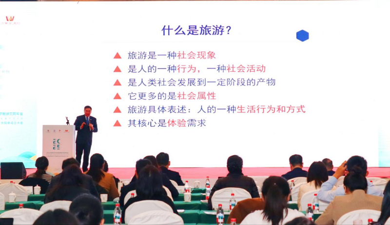 开幕式后,大会进入核心交流环节。陈献春以“加快培养和构建以‘生活策展人’和‘场景架构师’为核心的场景创新人才体系”为题分享了文旅人才培养的前沿理念与实践路径;王昆欣围绕“旅游、旅游业与旅游学的认识与辨析”展开深度解读,为文旅职教的学科建设与教学改革提供了理论指引,两场演讲引发全场共鸣。