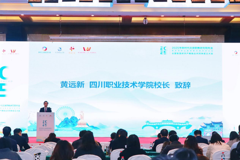 在“校长对话——服务地方・特色发展”论坛中,黄远新率先分享《扎根县域、政校企协同育人的“川职实践”》的经验。一是“园区+校区+厂区”三区共建,形成“一校一园区两基地”格局,创新“编制在校园,贡献在车间”模式。二是“产业+专业+就业”三业融通,精准打造专业集群。三是“标准+平台+服务”三维赋能,牵头编制国家级专业标准,构建社区学院,年社会服务超5万人次。该模式获评教育部“职业教育服务县域经济高质量发展典型标杆”。中智研学猫产业学院作为典型案例,以头雁领航、双师护航、项目赋能等模式,年接待研学学生1万人次、创收超 100万元,成为产教融合示范样板。