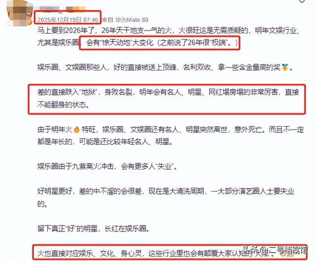 线年年底的时候,就有博主预测26年会有“惊天动地”的变化,有明星会塌的很厉害,到不能翻身的地步,
