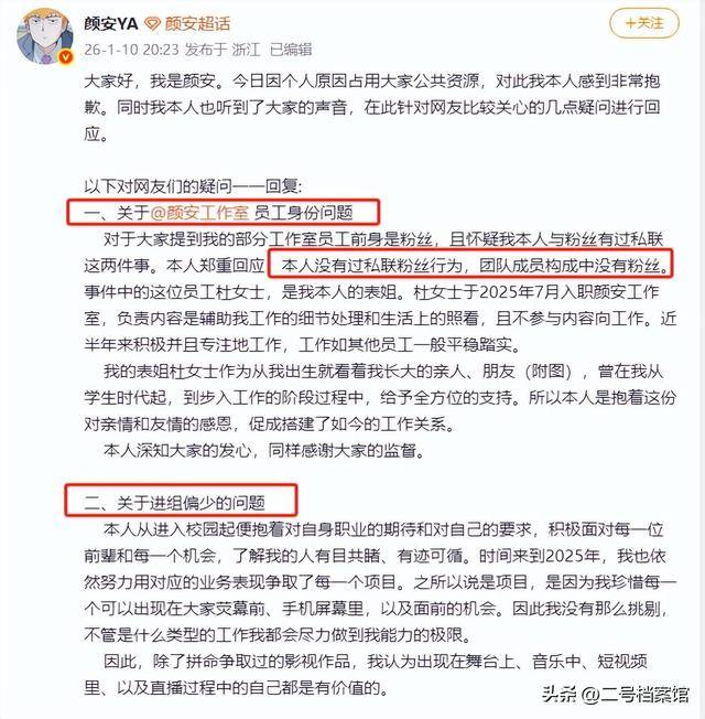 颜安”前脚男艺人颜安官宣自己的工作室是“全女”阵容,引发了全网的好评,后脚就被网友发出灵魂七问,曝料其私生活混乱。