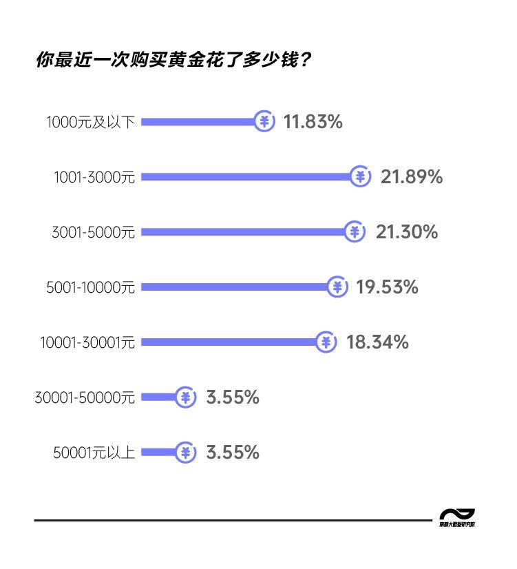二是资产配置的“轻量定投化”。父辈偏好一次性大额购置(金条、重磅首饰)作为“压箱底”的静态财富;Z世代则实践“跨期平滑”策略,接受“月存1克金”的定投模式,将黄金消费拆分为“咖啡钱”级别的无痛支出。这不仅是预算约束下的理性适应,更体现“流动性偏好,他们拒绝“All in”式实物囤积,追求可随时变现或调整的轻资产形态,调查中55%的年轻人单次花费5000元以内便是最直观的体现。