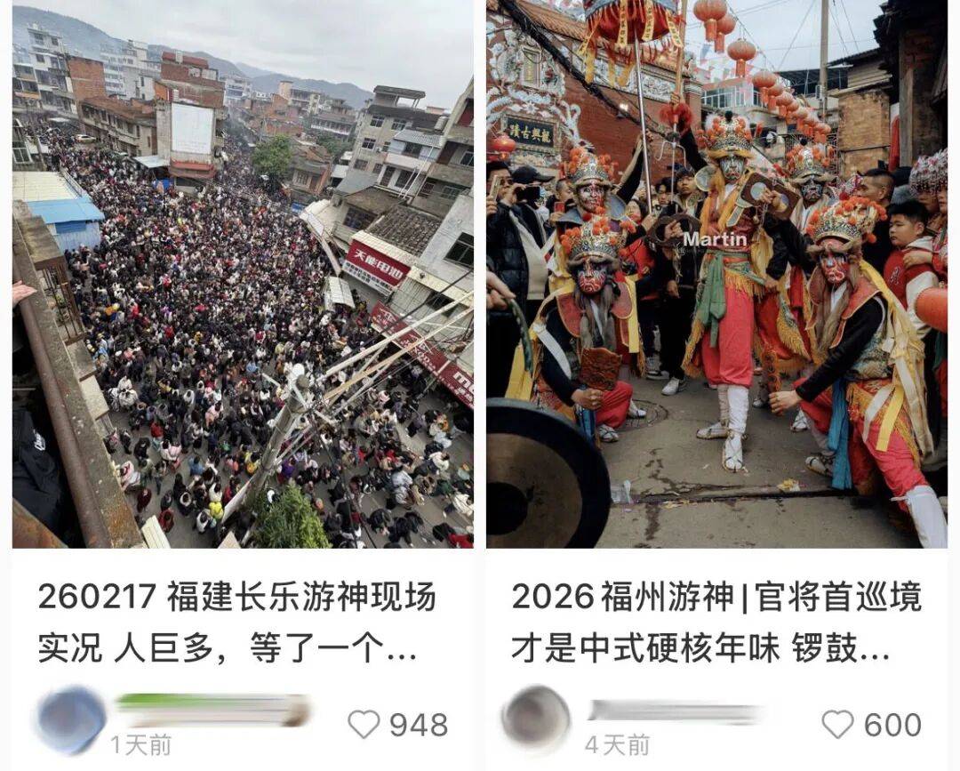 几年前就热闹无比的福建游神已经成为“手搓神仙”的杰出代表,各种扮相俊美优雅的巨大“神明”致力于带着全国打工人狂欢一个月;而江西葛仙村的财神游街在年前就冲上了热搜,抢着享受“一对一帮扶”的打工人冲到财神爷面前,一边磕头一边刮彩票。